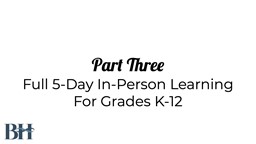 - BHS: Full 5- Day In-Person Learning for Grades k-12